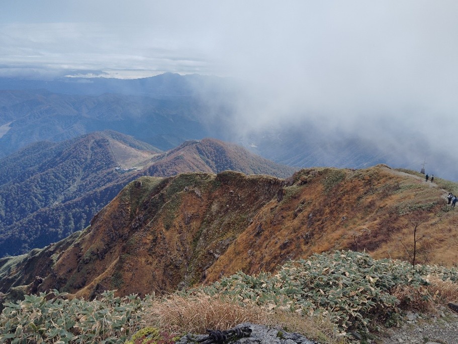 時として突然の霧や雲が発生し風雨にさらされることもあります