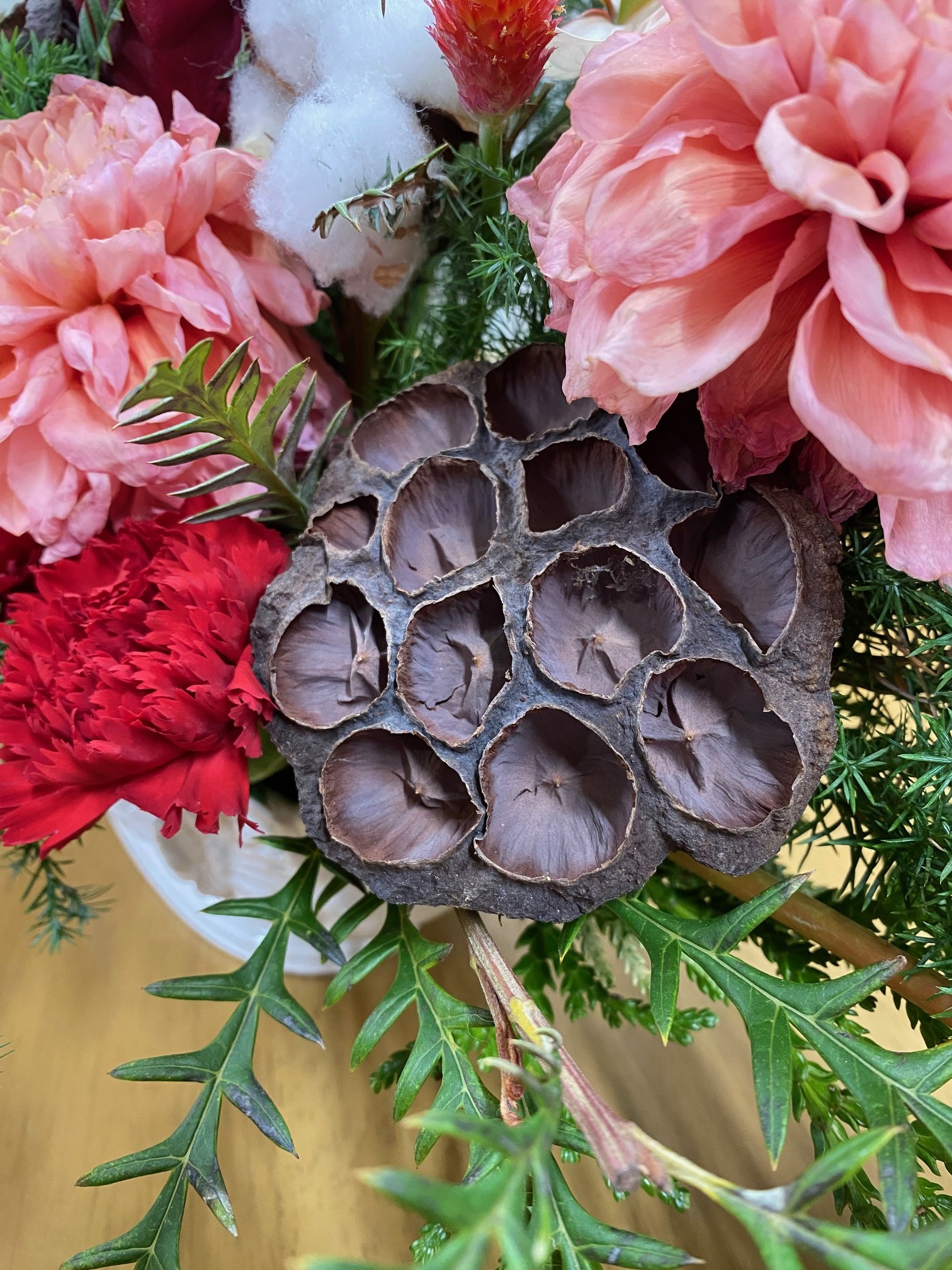 ドライフラワーなのですが、きれいなハスの花からは想像もできない形状です。