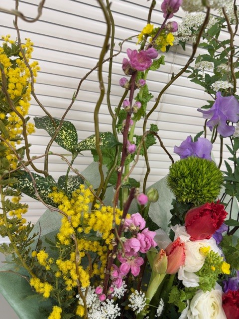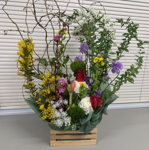 春の花が散りばめられたアレンジメントです
